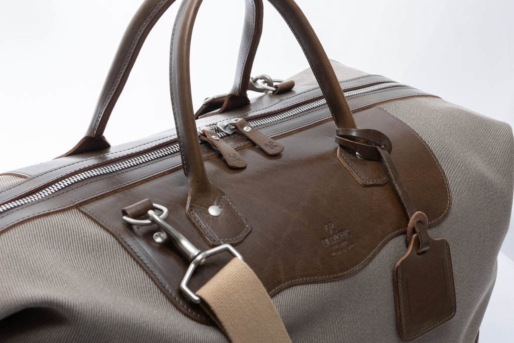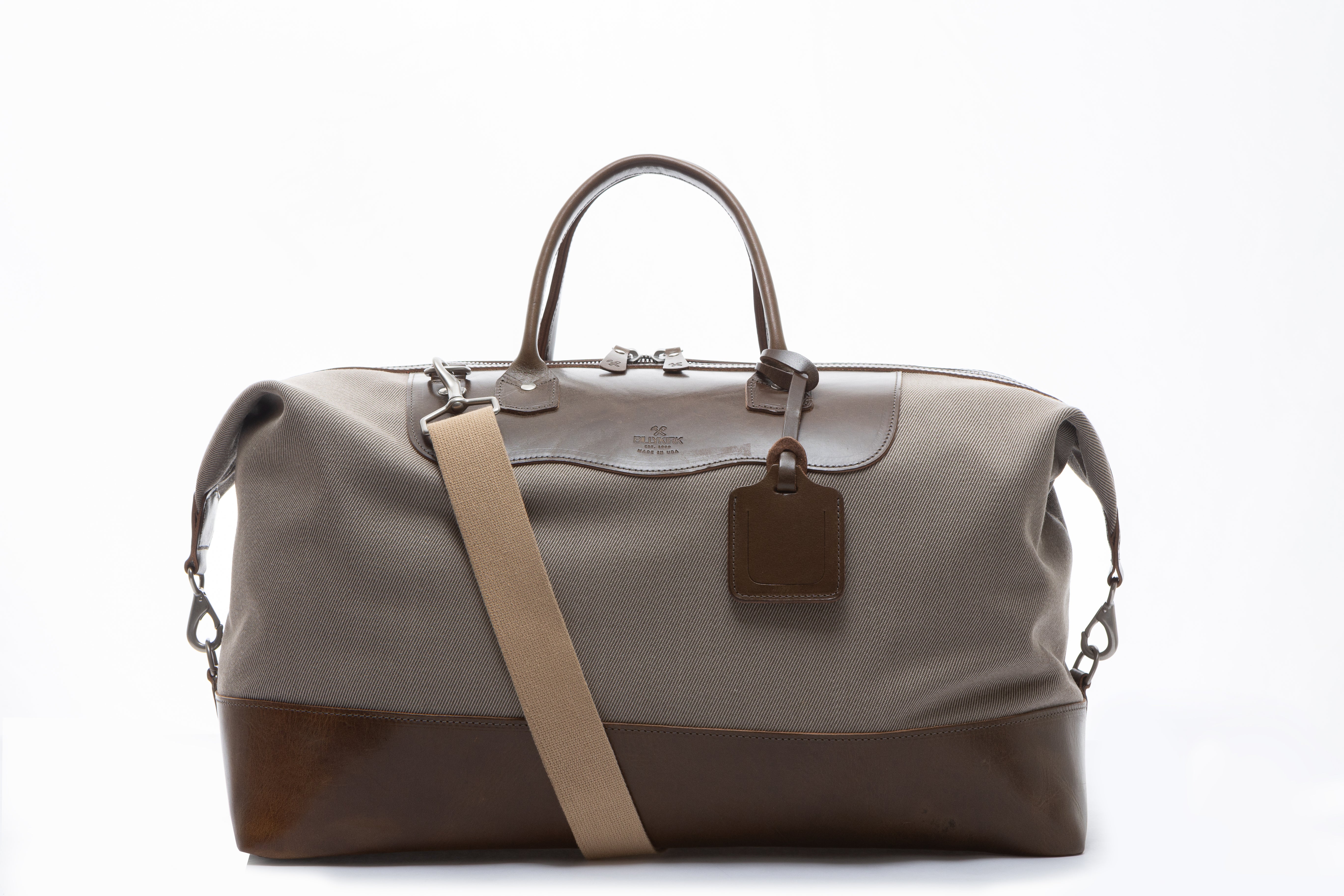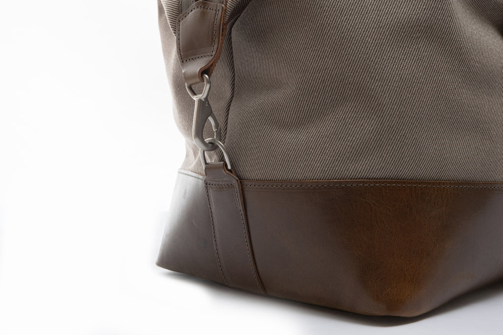 Adjustable cotton webbing shoulder strap with leather details